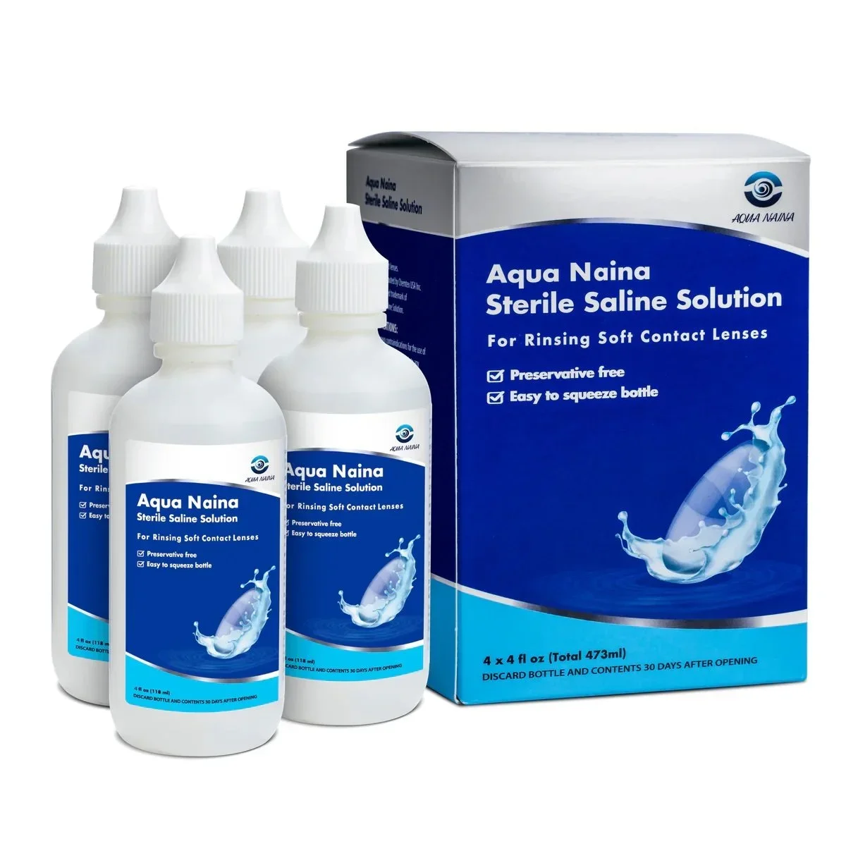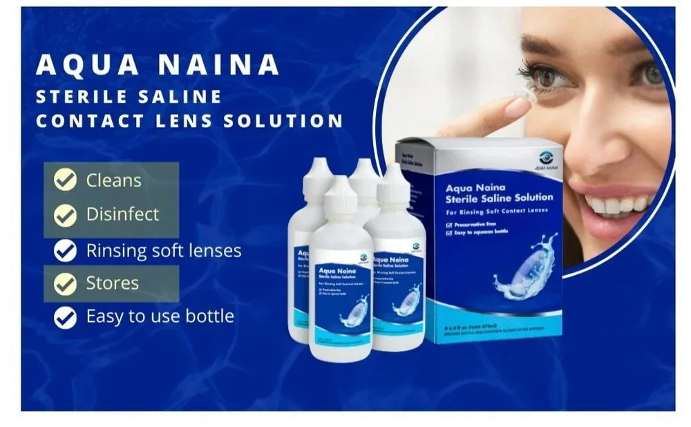 Aqua Naina saline solution is a multi-dose non-preserved buffered saline solution (ingredients: purified water, sodium chloride, boric acid, and sodium borate) which is being marketed for contact lens cleaning, disinfection and storage.