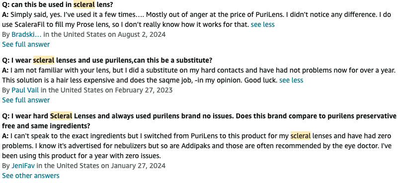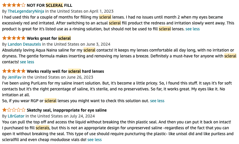 According to reviews, scleral lens users are using Aqua Naina to fill their lenses